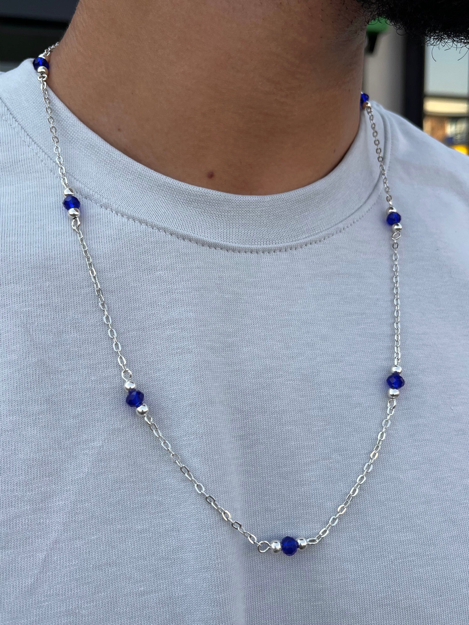 Blue beaded Chain in Sterling Silver 925s
