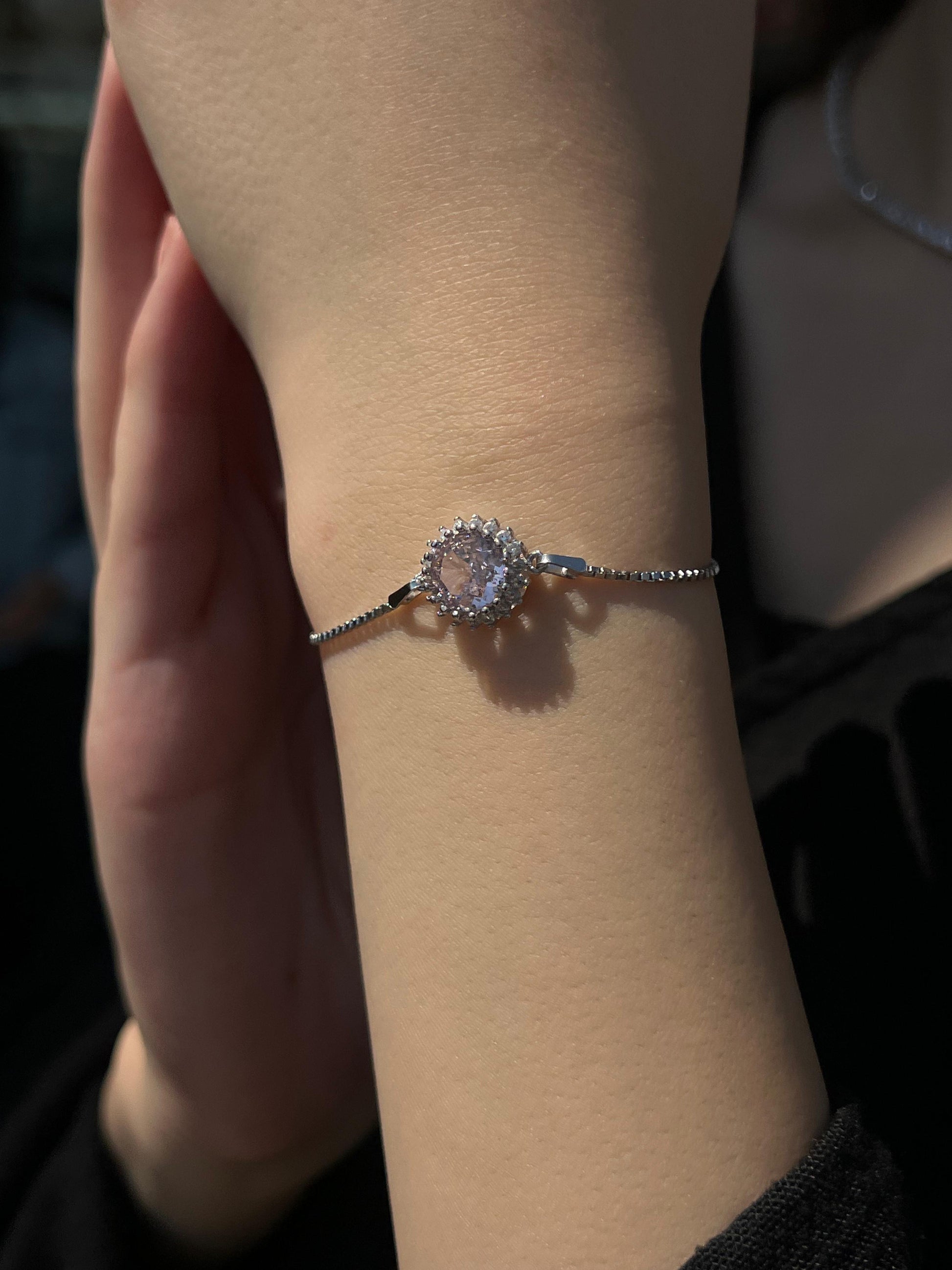 pink Zirconia Bracelet -in Sterling Silver -925